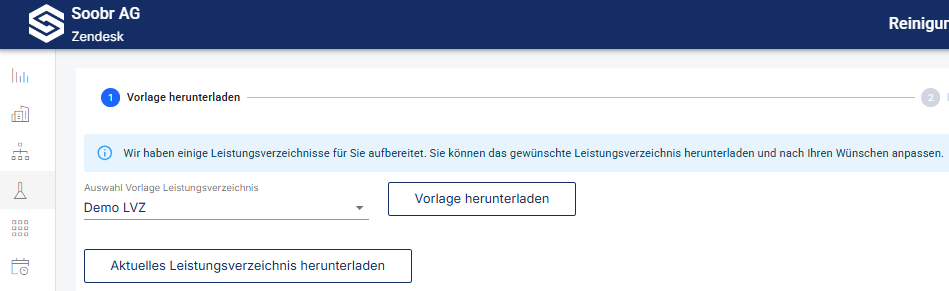 Alternativ kann man auch durch einen Klick auf Vorlage herunterladen eine Excel-Datei herunterladen, die als Vorlage zum Erstellen des Leistungsverzeichnis dient.