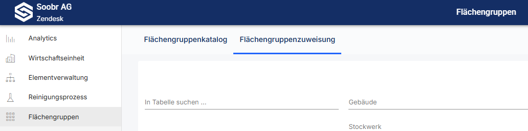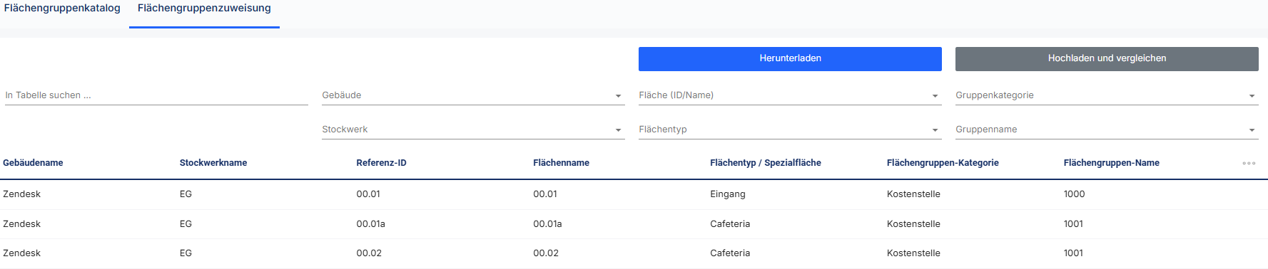 Im Reiter Flächengruppenzuweisung kann über einen Down- und Upload die Zuweisung der Gruppierungen an die Flächen vorgenommen werden.