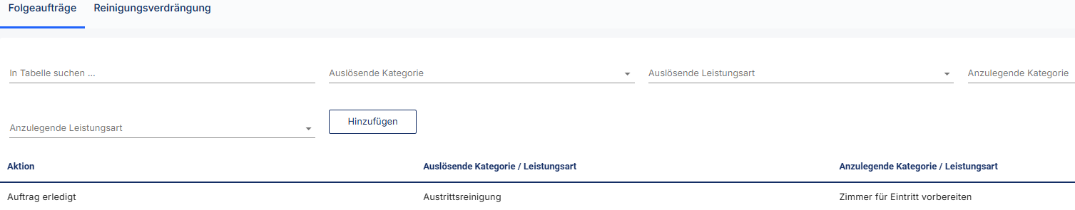 Im zweiten Teil wird eingestellt, was als Folgeauftrag ausgelöst werden soll. Hier wird definiert, welche Reinigungskategorie oder welche Leistungsart im Folgeauftrag enthalten sein muss.