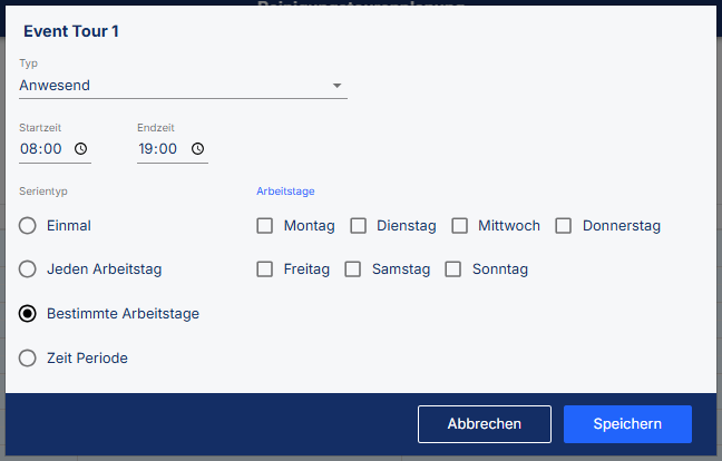 - Bestimmte Arbeitstage: Mit Anklicken auswählen, an welchen Tagen in Zukunft der Eintrag gilt
