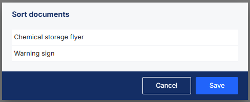 A window will open showing all the stored documents. You can now use drag and drop to sort the documents in the order you want. Click the Save button to apply the changes you have made.