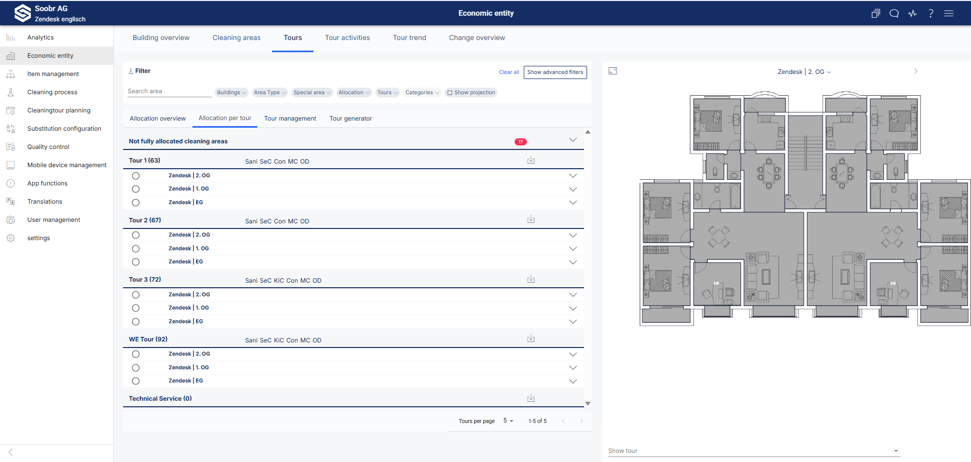 If an item has been created that has not yet been assigned to a tour, this is displayed in red under the “Not completely assigned areas” tab.